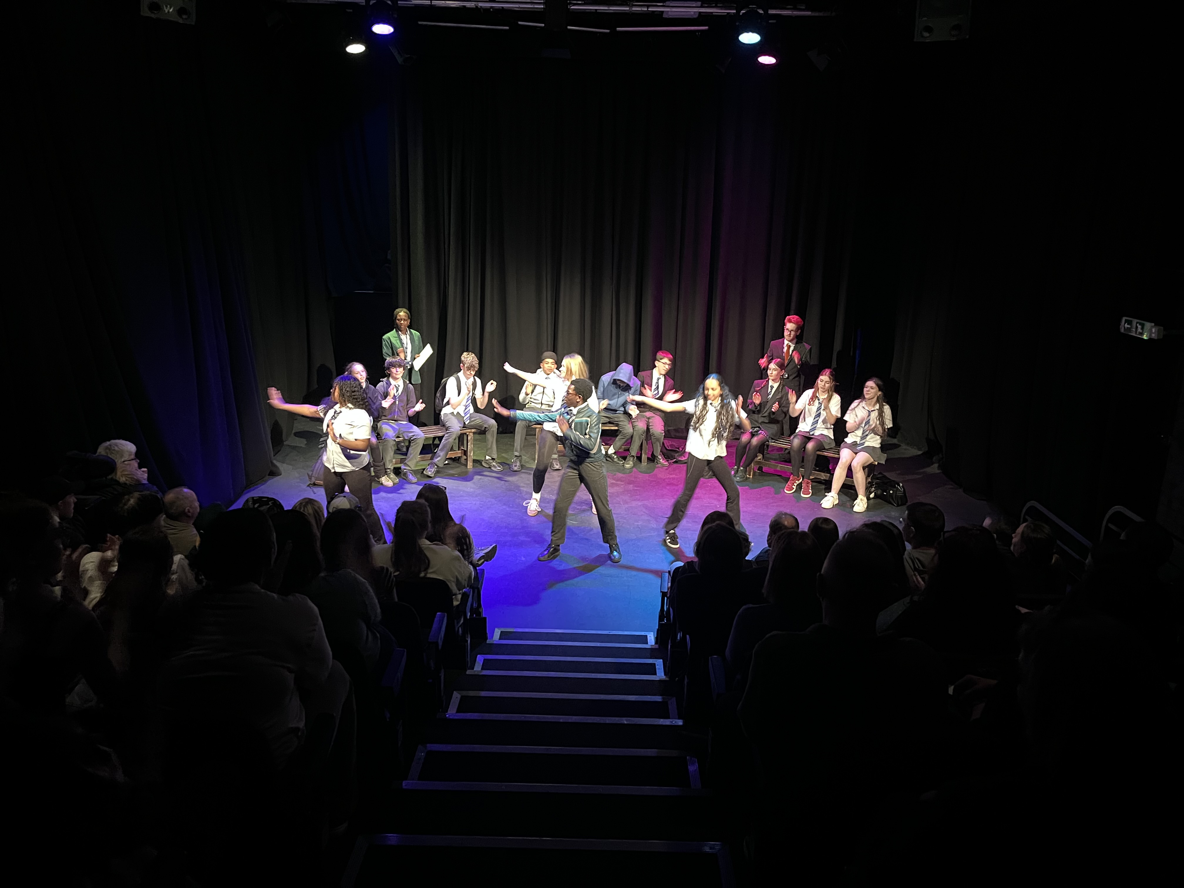For the second year Abbey Grange Drama students have taken part in the National Theatre’s Youth Festival, NT Connections. This year we staged a play of Helen Blakeman’s adaptation of ‘Cloud Busting’. Sixteen Year 10 GCSE Drama students performed, supported by student directors and technicians at York Theatre Royal on Thursday 19th March. They had a full day at the theatre which including technical rehearsals, and a professional movement workshop followed by performing to a sold out audience. They did an amazing job!